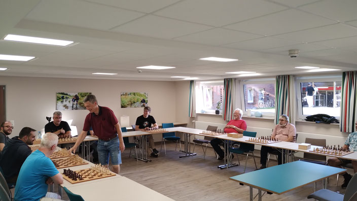 Die Auftaktrunde zur Saison 25/26 lief erfreulich. Vincenz, Jonas und Jürgen gewannen und Wolfram und Johann steuerten noch je einen halben Punkt bei. Das reichte für ein 4 : 2.